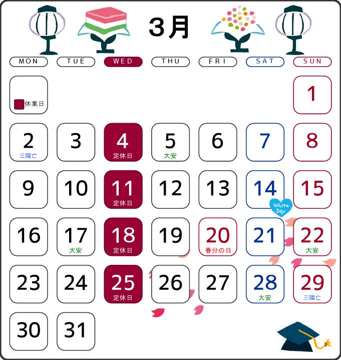 営業日の大安/ 5日(木)、17日(火)、22日(日)、28日(土)