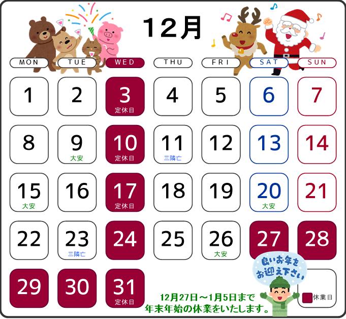 ※12月27日(土)~1月5日(月)まで年末年始のお休みをいただきます。